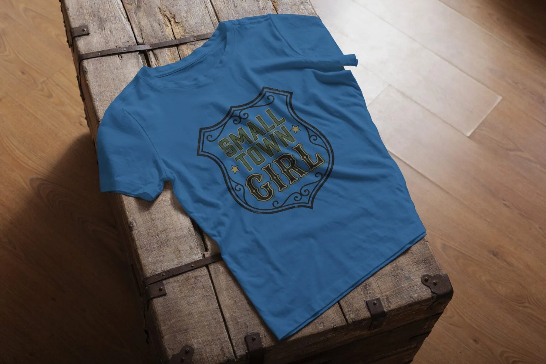 This Small Town Girl T-Shirt is available in multiple colours including arctic blue, beacon blue, bright white, and more prairie-perfect shades. We photograph 2-3 colour variant mockups so shoppers can see how the design looks on different backgrounds. Pick your colour and we will send a digital mockup before we make it. We’ll send you a mockup of your chosen colour before we make your t-shirt, so you can see exactly what you’re getting. No surprises, just prairie charm.