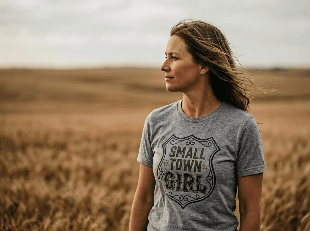 Ready to wear your small-town heart on your sleeve? Grab your Small Town Girl T-Shirt and let the world know that the prairies raised you right! 🌾✨