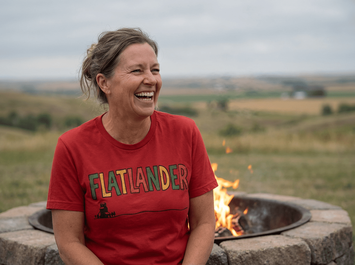 You know you’re a true flatlander when you can watch your dog run away for three days straight. When “hill” means the overpass on Highway 7. When your idea of rugged terrain is a gravel road with fresh washboard. The Flatlander T-Shirt gets it, because we get it too.